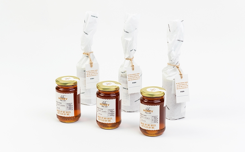 安東總是說“我的蜂蜜,由我裝瓶”。因此,在每瓶蜂蜜的包裝上都有手寫的產(chǎn)品名和型號或類別,由此向消費(fèi)者展現(xiàn)他們的真誠。為了體現(xiàn)產(chǎn)品原汁原味的特色,包裝采用簡潔的現(xiàn)代風(fēng)格,將更多的關(guān)注點(diǎn)放在產(chǎn)品本身上。每瓶蜂蜜有一個外包裝紙,起到保護(hù)和密封的作用,上面系著的吊牌可以寫上你想送給的人的名字。