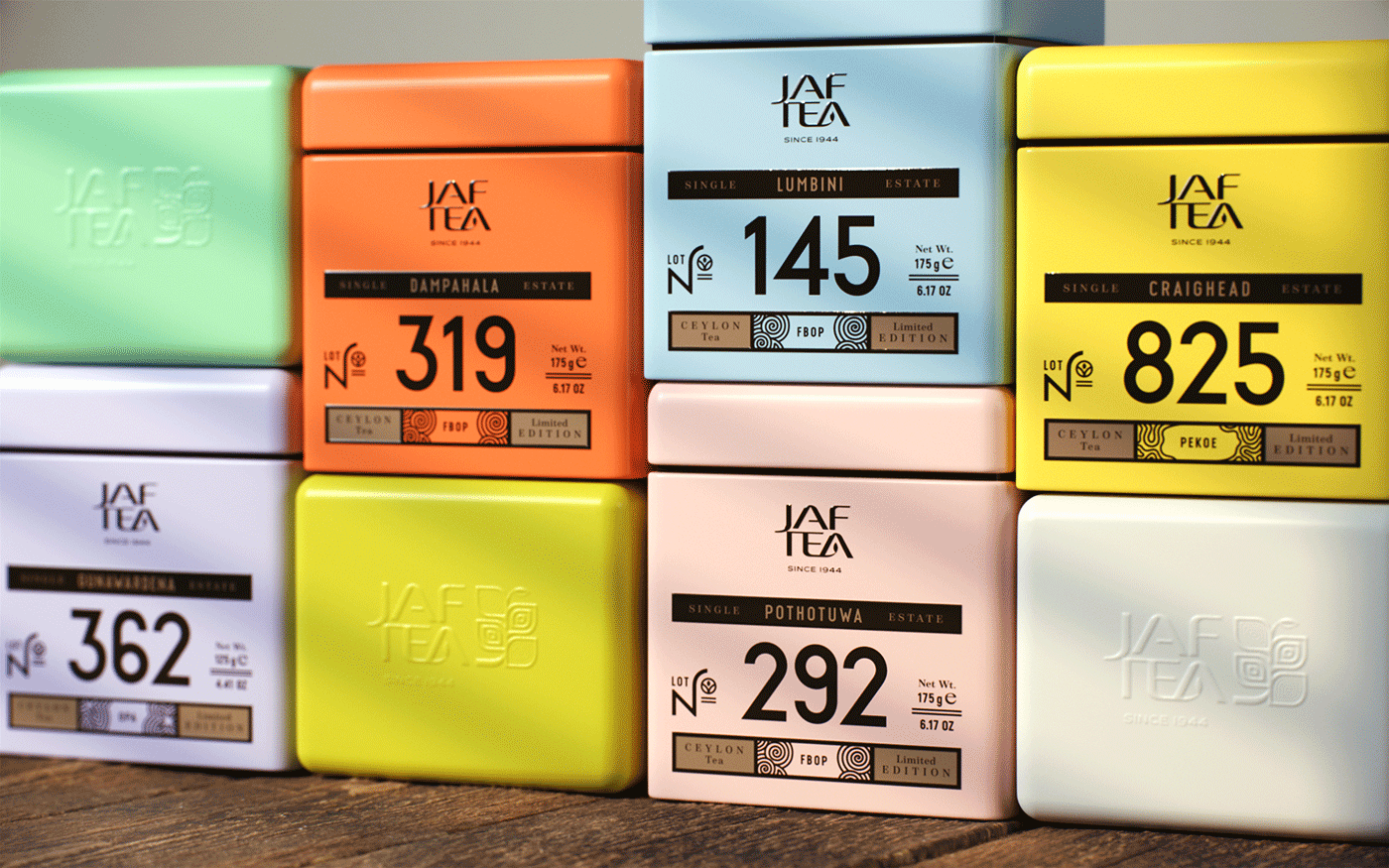 今天介紹的這款茶葉包裝是JAF茶品牌推出高檔錫蘭茶新限量收藏版。該品牌擁有70多年的獨(dú)特經(jīng)驗(yàn),以優(yōu)異的茶葉品質(zhì)和卓越的口感聞名于世。此品牌茶已熟練地選擇由經(jīng)驗(yàn)豐富的craftsmasters將客戶到茶味的世界更深入。包裝的本質(zhì)是分享所有關(guān)于茶葉的信息:等級(jí),生長(zhǎng)區(qū)域與錫蘭地圖上的點(diǎn),海拔,品酒和實(shí)力。這樣的包裝過(guò)程變得更加愉快和自覺(jué)。對(duì)于這個(gè)系列的包裝設(shè)計(jì)中,靈感來(lái)自殖民精神,這體現(xiàn)了對(duì)錫蘭茶葉生產(chǎn)的忠誠(chéng)和深厚的歷史根源。盡管是復(fù)古風(fēng)格,但由于運(yùn)用大膽的字體設(shè)計(jì),這些包裝看起來(lái)非常的現(xiàn)代。