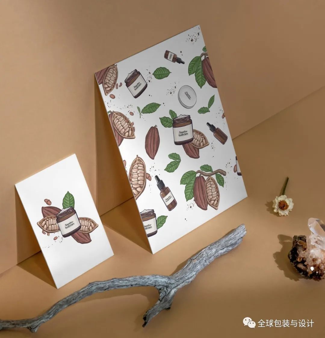 SAUCHA是瑜伽經(jīng)典的一個(gè)原則,字面意思是“純潔”、“潔凈”。這是有機(jī)身體黃油,含有可可脂。因此,決定創(chuàng)作生動(dòng)的可可豆插圖,展示大自然的力量和清新。另外,選擇了鮮艷的顏色和俏皮的風(fēng)格,所以品牌感覺(jué)很友好。