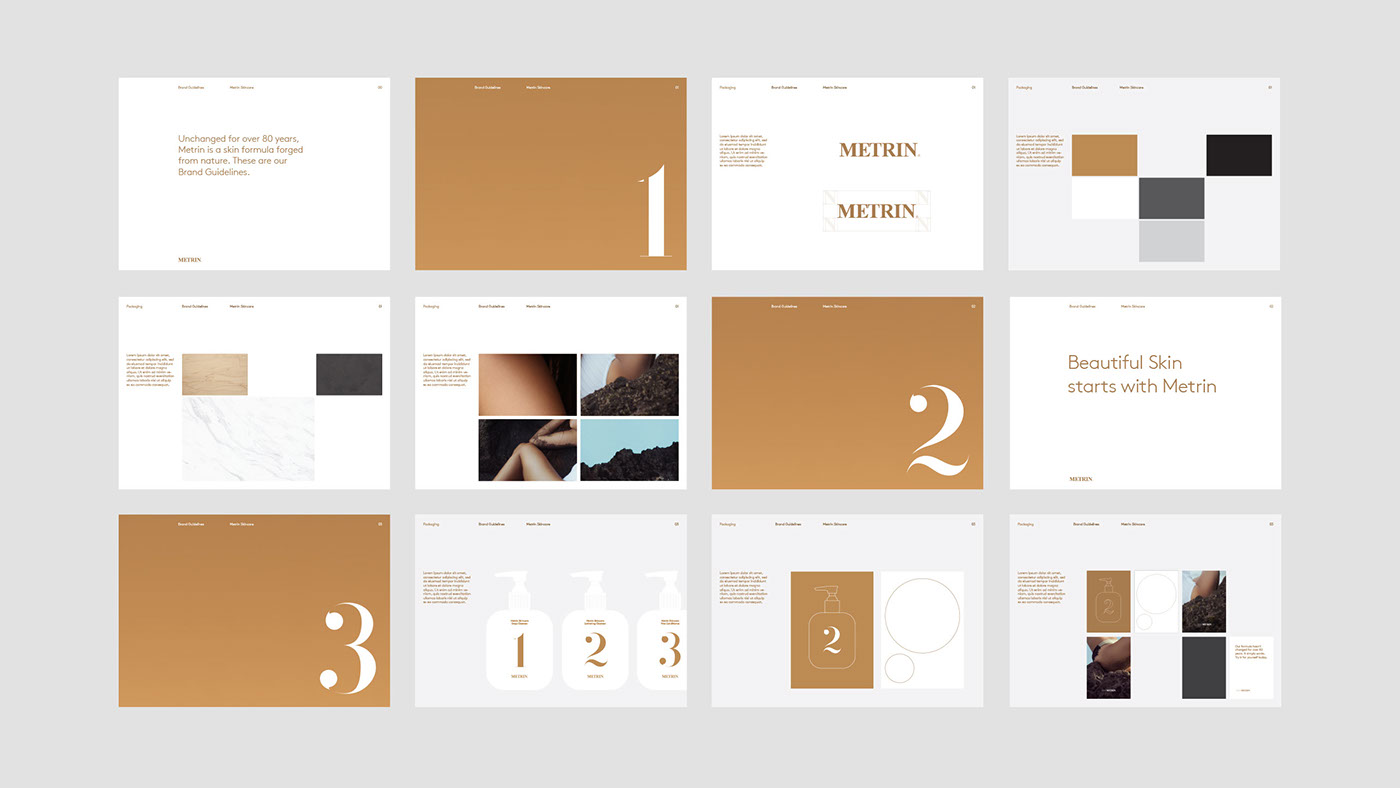 該公司成立于1932年,是一款可信賴的護(hù)膚產(chǎn)品,已被制定為清潔、滋潤(rùn)和保護(hù)皮膚長(zhǎng)達(dá)80年之久。METRIN使用最好的草藥和植物提取物,刺激皮膚深處的自然反應(yīng),產(chǎn)生健康的、半透明的膚色。我們被要求對(duì)品牌進(jìn)行重新設(shè)計(jì),使品牌現(xiàn)代化,使它能與當(dāng)今時(shí)代的生活無(wú)縫融合,同時(shí)又不失其受人信賴的傳統(tǒng)。