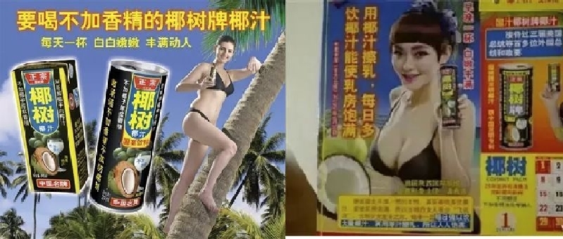 新包裝完全傳承了椰樹的風(fēng)格,第一:字要多,第二:字要多,第三:配色要紅、要藍(lán)。