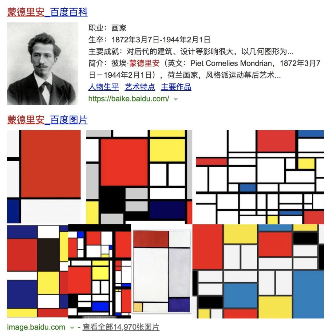 因為這個風(fēng)格是出名的《紅、藍(lán)、黃構(gòu)圖》,也就是彼埃·蒙德里安的畫作.