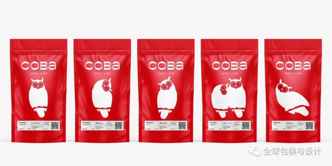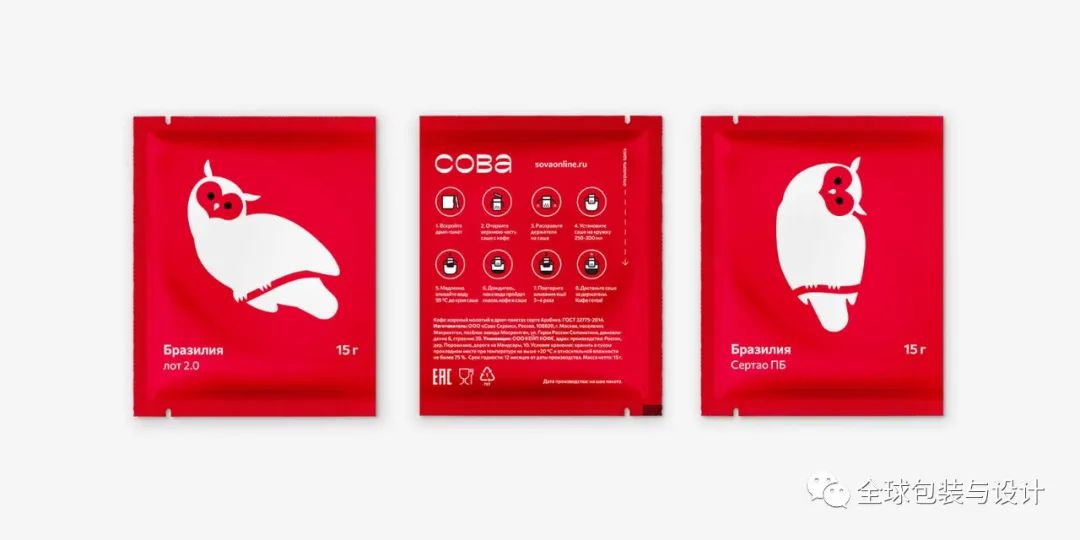 Sova(俄語(yǔ)中的“貓頭鷹”)是一家特色咖啡烘焙公司。貓頭鷹是一個(gè)友好的專家,不僅在文字上,而且在每一個(gè)視覺(jué)圖像細(xì)節(jié)上都需要開(kāi)放、真誠(chéng)和簡(jiǎn)單。字母的圓形和相反的對(duì)比增加了一點(diǎn)俄羅斯風(fēng)格,甚至令人驚嘆。