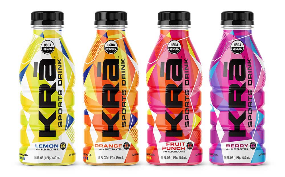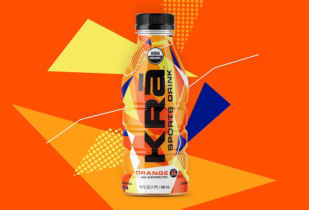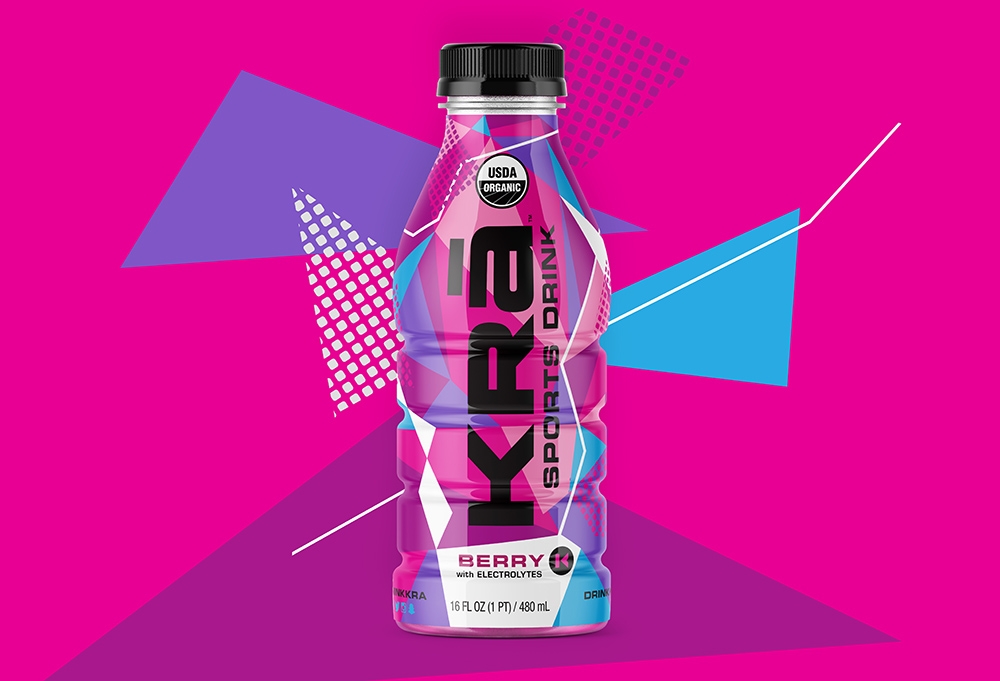 KRA(與“play”押韻)是100%的有機運動飲料。飲料品牌包裝旨在吸引活躍的消費者,包括“Z一代”消費者(年齡在8-18歲)。品牌包裝設(shè)計需要向外界傳達的聲音是運動的、自信的、令人振奮的,而在其他運動飲料包裝設(shè)計中中卻經(jīng)常出現(xiàn)醒目的圖案和明亮的色彩。