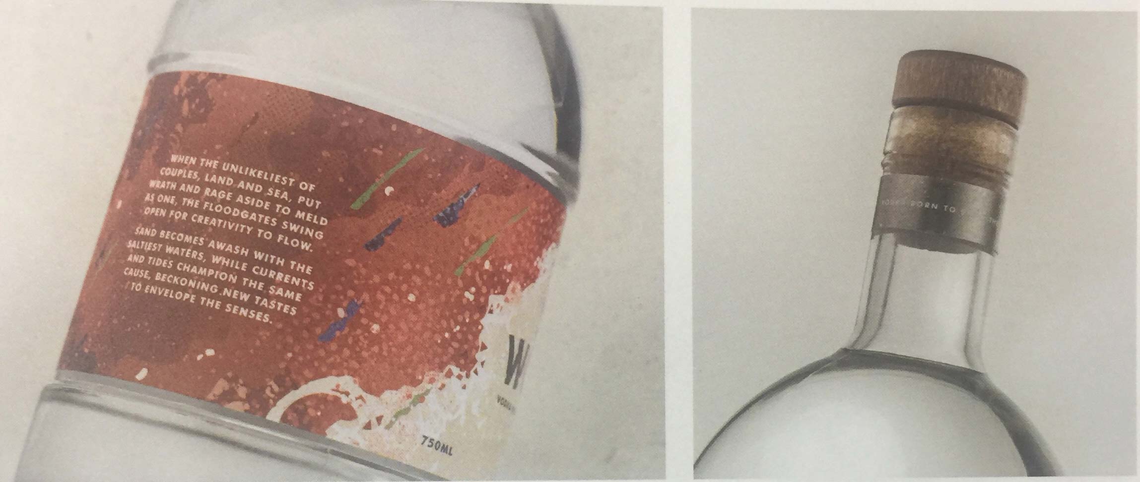 這款伏特加的瓶標(biāo)以澳大利亞海邊景象和血腥瑪麗雞尾酒為設(shè)計(jì)靈感,并以澳大利亞本土的濱藜屬植物(使人聯(lián)想起海一樣的味道)、多里戈辣椒葉、檸檬桃金娘和芫荽子為導(dǎo)向。該品牌對陸地與海洋之間的關(guān)系進(jìn)行了探索:通過樸實(shí)的香料與海水咸甜味道的結(jié)合,將兩股強(qiáng)大的力量匯聚一處,以此將新奇有趣而令人振奮的設(shè)計(jì)元素呈現(xiàn)在人們面前。