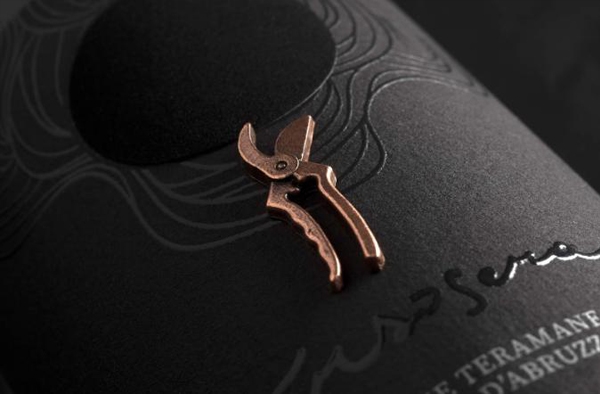 以這樣簡(jiǎn)單的設(shè)計(jì),代表了我們?nèi)祟惡妥匀恢g,農(nóng)民的努力和葡萄收獲的果實(shí)之間唯一的載體。修剪剪刀代表了與剛在葡萄園中度過的一天相關(guān)的時(shí)間和記憶。金屬合金制成的修枝剪突出了這一重要元素,并且賦予葡萄酒高端的視覺感受。