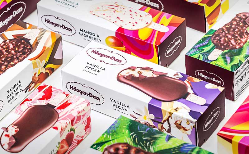 哈根達(dá)斯(haagen - dazs)最近進(jìn)行了近20年來最大的包裝大修,這家總部位于英國的創(chuàng)意機(jī)構(gòu)在新品牌設(shè)計大修之后,希望將包裝成為一種令人渴望的對象,并將哈根達(dá)斯(haagen - dazs)的獨(dú)特配方、顏色和感情融入到包裝中。