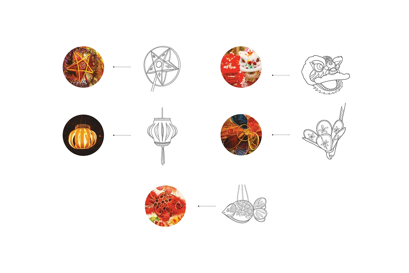 樂天度假酒店的中秋月餅禮盒包裝設(shè)計(jì),這些插圖的設(shè)計(jì)靈感來自于不同的中秋節(jié)項(xiàng)目,例如:星燈,手工制罐燈,鯉魚燈,獅子頭,…