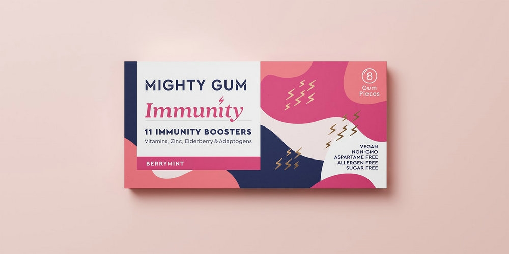 顧名思義,美國的Mighty Gum遠遠超出了薄荷清新口氣的常規(guī)功效,每次咀嚼時都能提供一劑免疫力增強的維生素。這一款全新的維生素功能口香糖需要一個全新的品牌,將其與狂熱的狂熱競爭者分開,因此他們與專業(yè)的食品品牌推廣機構Hunger合作。
