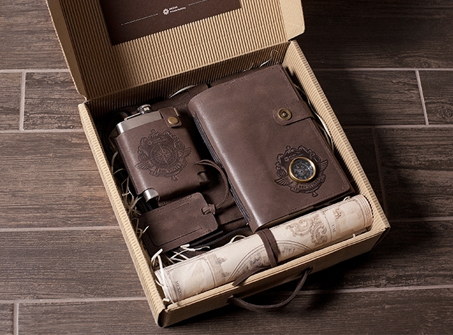 一旦你訪問(wèn)了其中一個(gè)國(guó)家,你就可以將各自的郵票粘在地圖上。禮品箱箱里裝的是皮革封面上的品牌產(chǎn)品,可以方便地掛在腰帶上,單獨(dú)設(shè)計(jì)和縫制肩包,并為旅行者提供一個(gè)筆記本,在不同國(guó)家有很多有用的信息,還有著名的旅行者和探險(xiǎn)者的陳述。所有的配件都是用高檔皮革做的。享受你的旅行,記錄最有趣的時(shí)刻!