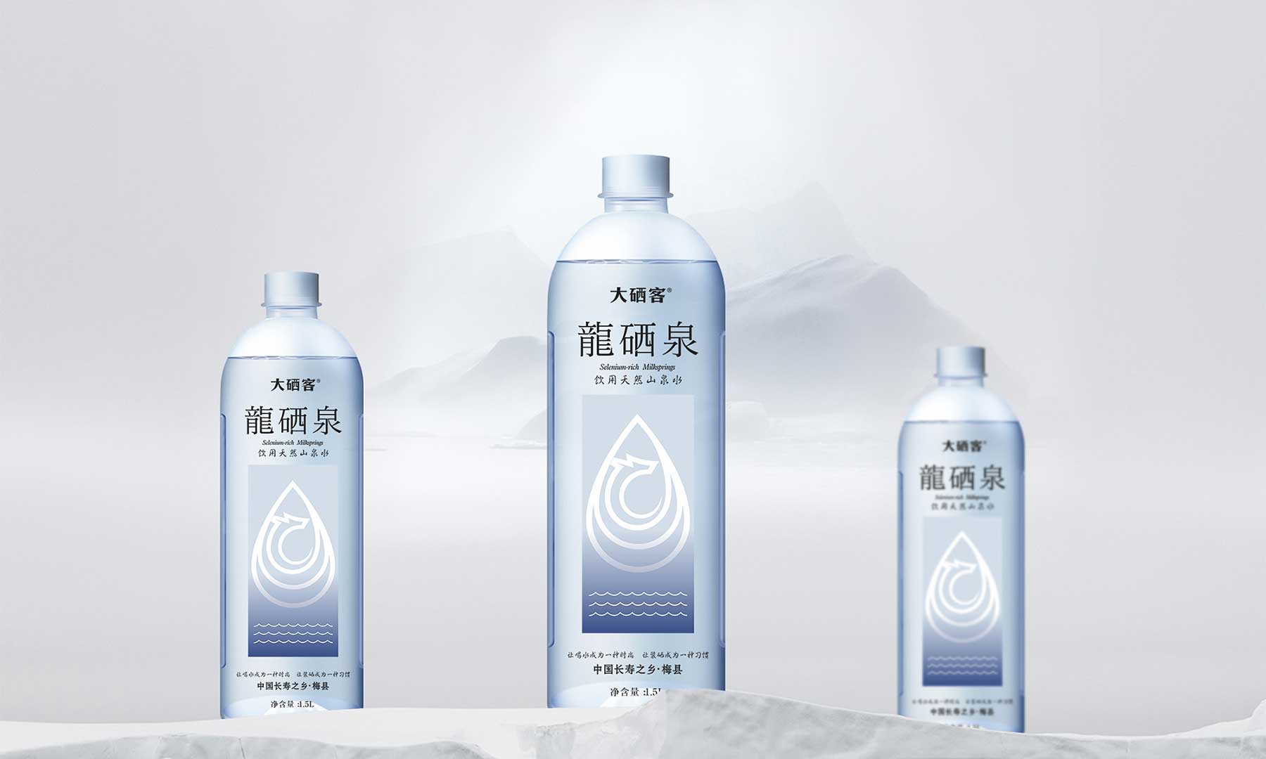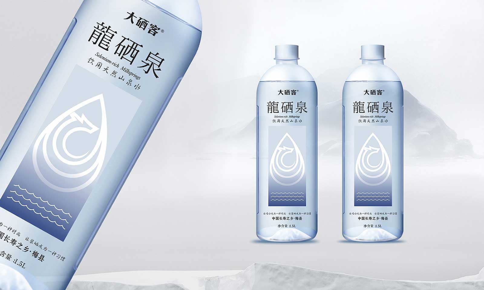 “顏值”吸引消費(fèi)者的關(guān)注,內(nèi)涵贏得消費(fèi)者的共鳴,品質(zhì)形成消費(fèi)者的粘性,如何巧妙地在包裝上將龍硒泉這一有力的品牌與山泉水的特性結(jié)合,從而達(dá)到品牌的顯性傳播以及強(qiáng)調(diào)其氣質(zhì)是該項(xiàng)目的重點(diǎn)。