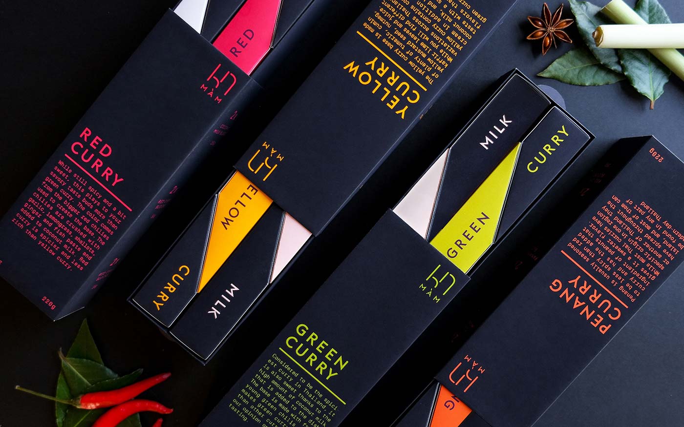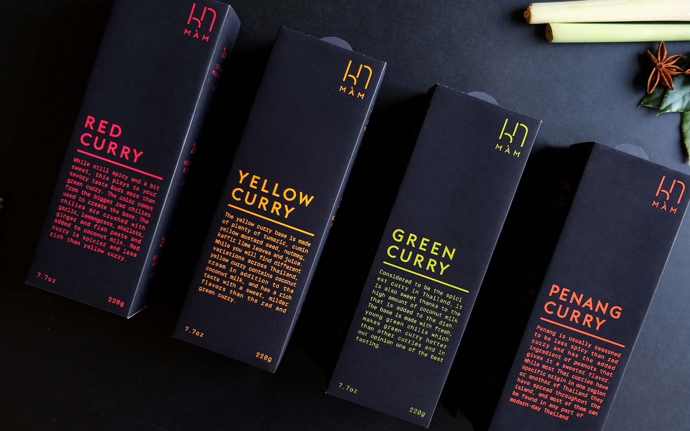MàM Thai咖喱是一條新的產(chǎn)品線,它把制作泰國咖喱的所有主要原料打包成一個包裝,其中包括泰國咖喱醬、椰奶和泰國香料。這個產(chǎn)品的獨特之處在于,與市場上其他泰國咖喱產(chǎn)品相比,使用起來更方便。泰國咖喱塊是可調(diào)的香料,通過使用泰國香料立方體。通常,咖喱所需的所有配料都要進行大量的包裝。