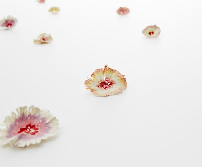 實(shí)際上它是紙做的,容易被削掉。以往看起來臟兮兮鉛筆末竟然也能變成像一件藝術(shù)品一樣的綻放的花朵。